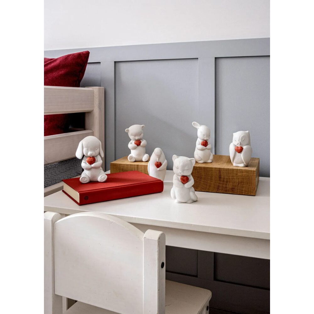 Matte white porcelain ensures a perfect finish which enhances every meticulously modeled detail of the figure, on which the beautiful glazed deep red heart stands out. A collectible piece, ideal as a gift both for children and adults. Handcrafted in the Lladró workshops in Spain.