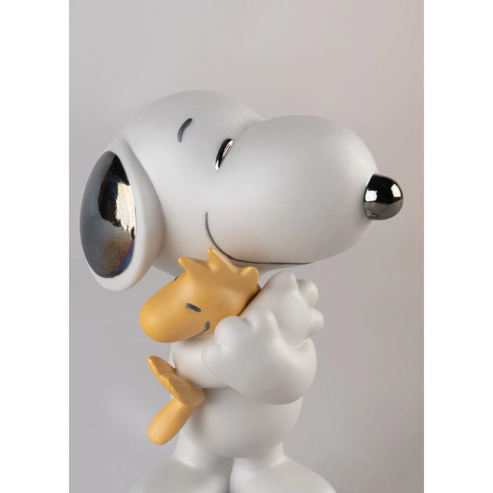 One of the characters created by Charles Schulz for the Peanuts comic strip, made in matte and glazed porcelain. Snoopy, seen here hugging his faithful friend Woodstock, is presented with a special decoration and commemorative decal to celebrate the 70th anniversary of the first appearance of Schulz’s comic strip which he composed for almost 50 years.